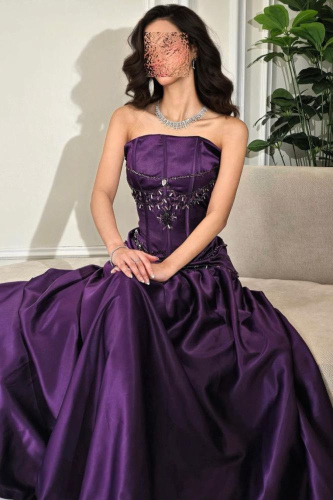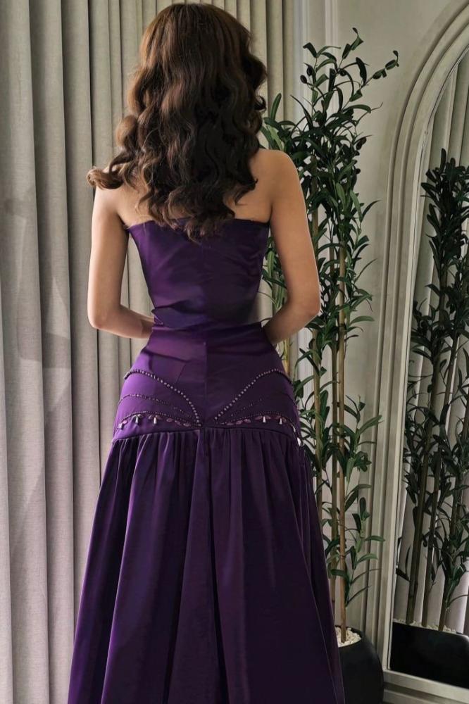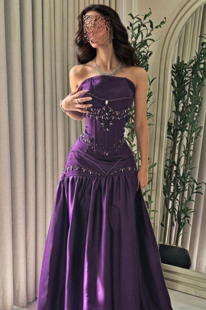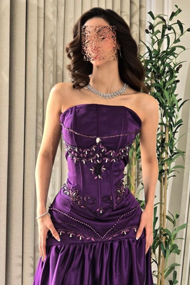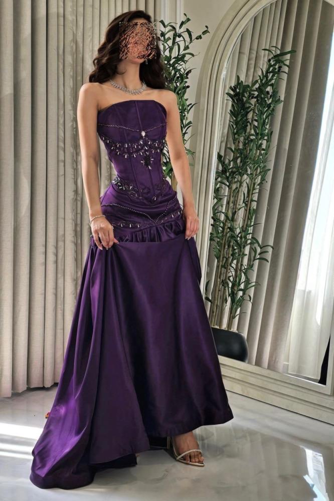 فستان سهرة انيق مذهل باللون ليلكي مصمم على شكل كورسيه ضيق ومحدد للخصر💜