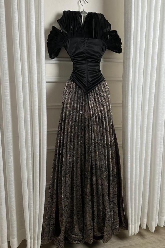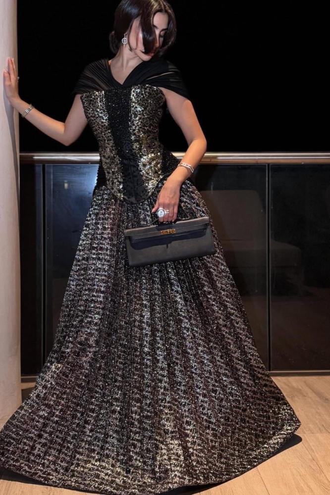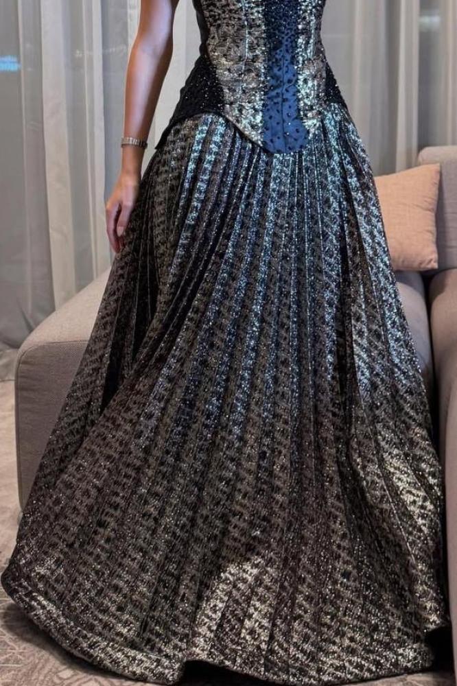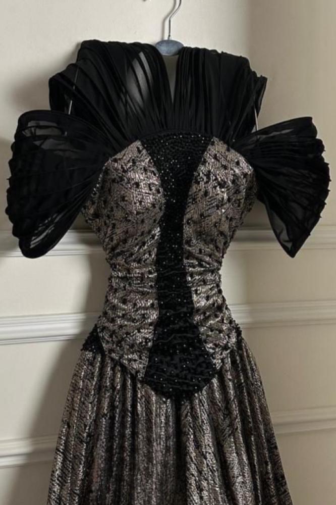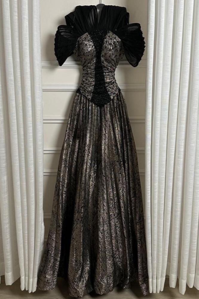 فستان سهرة فخم ومميز بالون اسود و ذهبي